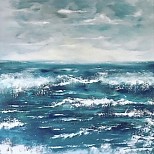 Een globale impressie van het schilderij "Orange sky" 100x80cm.