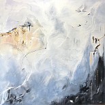 Een globale impressie van het schilderij "Blue planet" 120x80cm.
