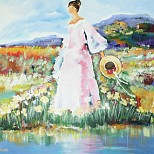 Een globale impressie van het schilderij "Zomer" 120x30cm.
