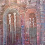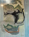 Acryl op papier 70x50 ingelijst gemaakt in toscane scheur in een muur onstond onbewust een vogel figuur in jammer van lichtinval bij foto malen