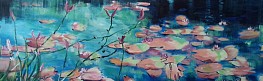 Een globale impressie van het schilderij "Waterlelies" 120x40cm.