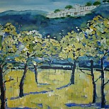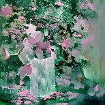Een globale impressie van het schilderij "Moderne (waterlelies)" 100x100cm.