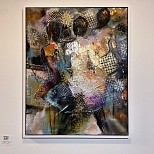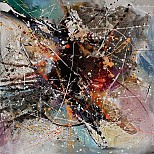 Abstract schilderij 80x 100x 3,5 cm. Incl. Zwarte lijst 85x 105.