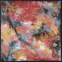 Acryl op canvas 3D doek. 🐝 in een bloemen zee. Afgewerkt met mat vernis.ophang systeem aanwezig. Afgewerkt met zwarte baklijst . Prijs en maat is incl. Lijst.