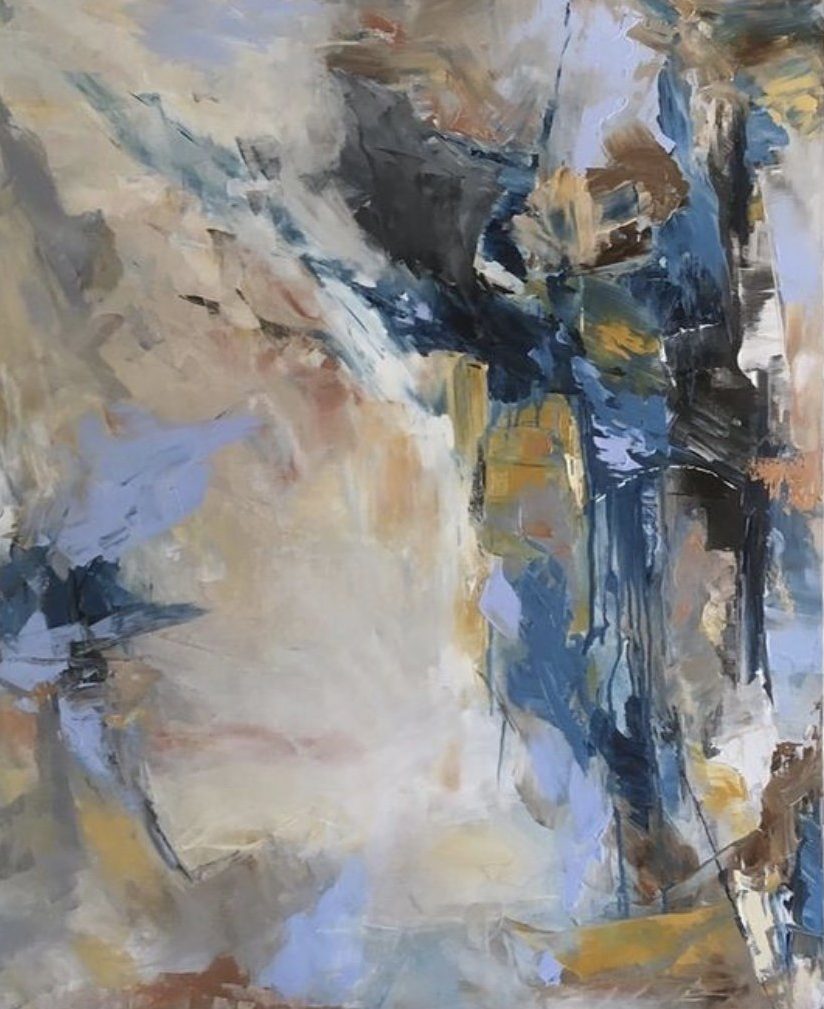 Een globale impressie van het schilderij "Think blue" 80x100cm.