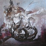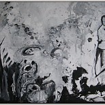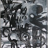 Een globale impressie van het schilderij "Zonder titel" 80x80cm.