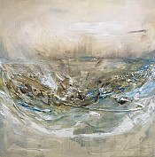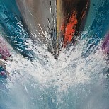 Een globale impressie van het schilderij "Wereld in chaos opweg naar verandering" 80x80cm.