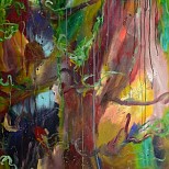 Acrylverf op doek. Expressieve vorm in verschillende kleuren vormen een krachtige compositie