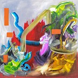Acrylverf op canvas. Klassieke kleuren in een krachtige compositie