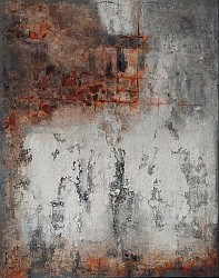 In mooie tinten grijs wit oranje en roestkleur.