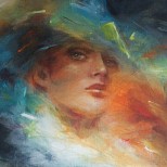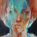 Groot schilderij gemaakt met acrylverf op doek. Het heeft een frame dat niet kan kromtrekken. Het bestaat uit abstractie met het vrouwelijk gelaat. Het bevat veel rode tinten. Het doet denken aan avondrood. Het is mysterieus en romantisch.