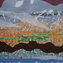 Een globale impressie van het schilderij "EINDERS nr. 5" 100x100cm.
