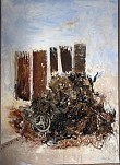 Mixed media met jutters materiaal als zeewier, touw en touw maar ook karton en jute.