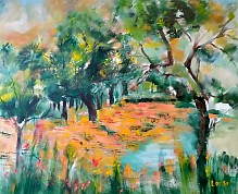Een globale impressie van het schilderij "Olijfbomen" 100x80cm.