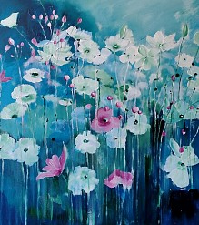 Een globale impressie van het schilderij "Veldbloemen (2)" 100x100cm.