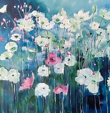 Een globale impressie van het schilderij "Witte bloemen" 100x100cm.