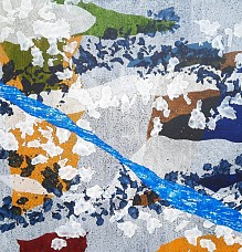 Abstract schilderij uitgevoerd in Olieverf en Inkt op Linnen Ingelijst in een stalen baklijst en gesigneerd