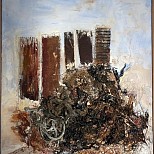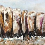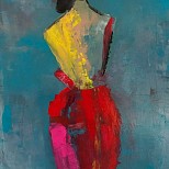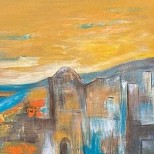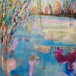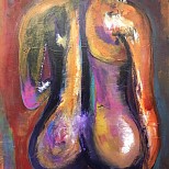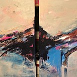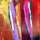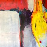Een globale impressie van het schilderij "Blij met het kind in Mij" 122x122cm.