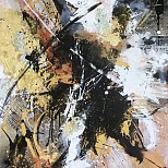 Sky explosion 7. Mixed media art. Acryl verf , goudblad, glas parels , goud poeder.
