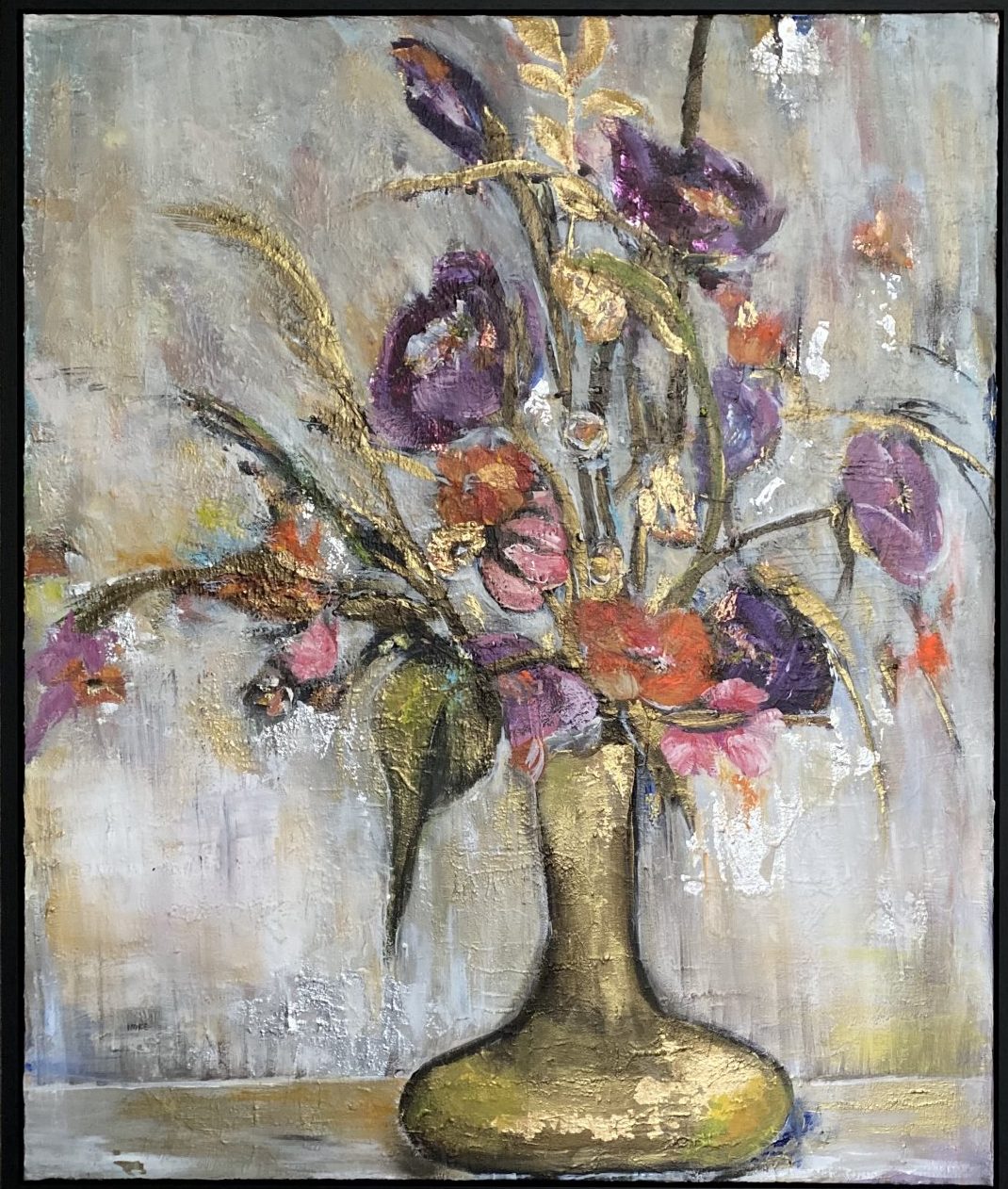 Flowers to love. 105x125 cm.incl. Zwarte lijst. Mixed media.acryl op canvas 3D doek. Aflak vernis mat. Ophang systeem. Interesse in dit schilderij? Dit kunstwerk is geëxposeerd in de showroom van Totalhomeconcept in Lelystad.