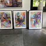 Mixed media kunst. Schilderij : Colours 105x165 cm. Is incl. witte lijst.. Prijs is incl. de witte lijst. Afgewerkt met mat vernis. Ophang systeem aanwezig.