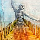 Een globale impressie van het schilderij "Figures - Guardian Angel" 14,5x22,5cm.