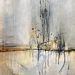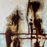 Mixed media (paraffine, pigmenten, inkt, acryl) op aquarel geplakt op paneel van 0,9 cm dik