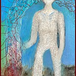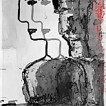Een globale impressie van het schilderij "Figures - zittend figuur" 14,5x22,5cm.