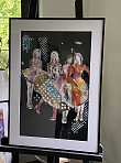 Acryl op papier met pas partout en zwarte aluminium lijst.