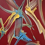 Een globale impressie van het schilderij "Aztec Fire" 70x70cm.