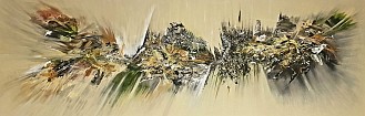Een globale impressie van het schilderij "Sunlit Foliage" 150x50cm.