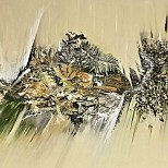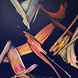 Een globale impressie van het schilderij "Descent of the Annunaki" 120x60cm.