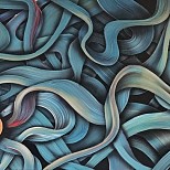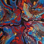 Descent of the Annunaki acrylverf op katoen met spieraam.