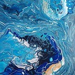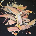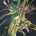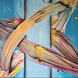 Een globale impressie van het schilderij "Souls Intertwined" 180x60cm.