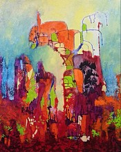 Een globale impressie van het schilderij "Lets go" 80x100cm.