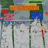 Abstract schilderij uitgevoerd in Olieverf en Inkt op Linnen