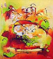 Een globale impressie van het schilderij "Time flies" 80x90cm.