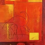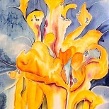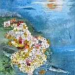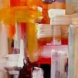 Dit is een semi-abstract, geschilderd, met acrylverf op linnen en met het paletmes gedaan.