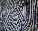 Vanwege zijn bijzondere uiterlijk triggert de zebra mij en inspireert mij tot een schilderij met een eigen toets. Aan het zwart/wit zijn 'gouden' details toegevoegd. De naam komt waarschijnlijk uit het Portugees cebrario of ezebrario, wild paard of wilde ezel (882).