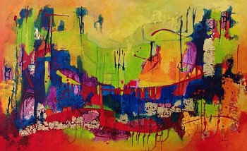 Een globale impressie van het schilderij "The bridge" 160x100cm.