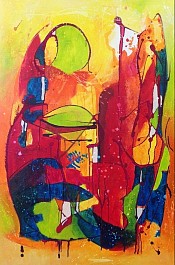 Een globale impressie van het schilderij "Happiness" 80x120cm.