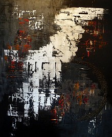 Met een donkere, zwarte achtergrond een verrassend schilderij met veel licht, rood en oranje. Als dit schilderij of goed belicht wordt, of op een lichte plaats hangt, dan is het een beauty !!