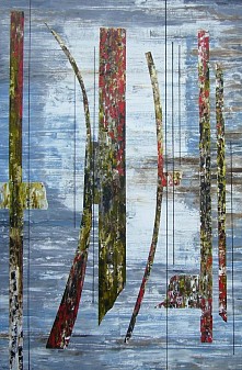 Abstract schilderij uitgevoerd in Olieverf op Linnen Ingelijst (stalen baklijst) en gesigneerd Prijs op aanvraag