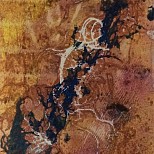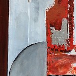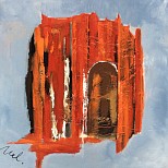 Acryl schilderij,op doek,in oranje,met andere materialen er aan toegevoegd