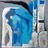 Een globale impressie van het schilderij "Vogel" 50x50cm.