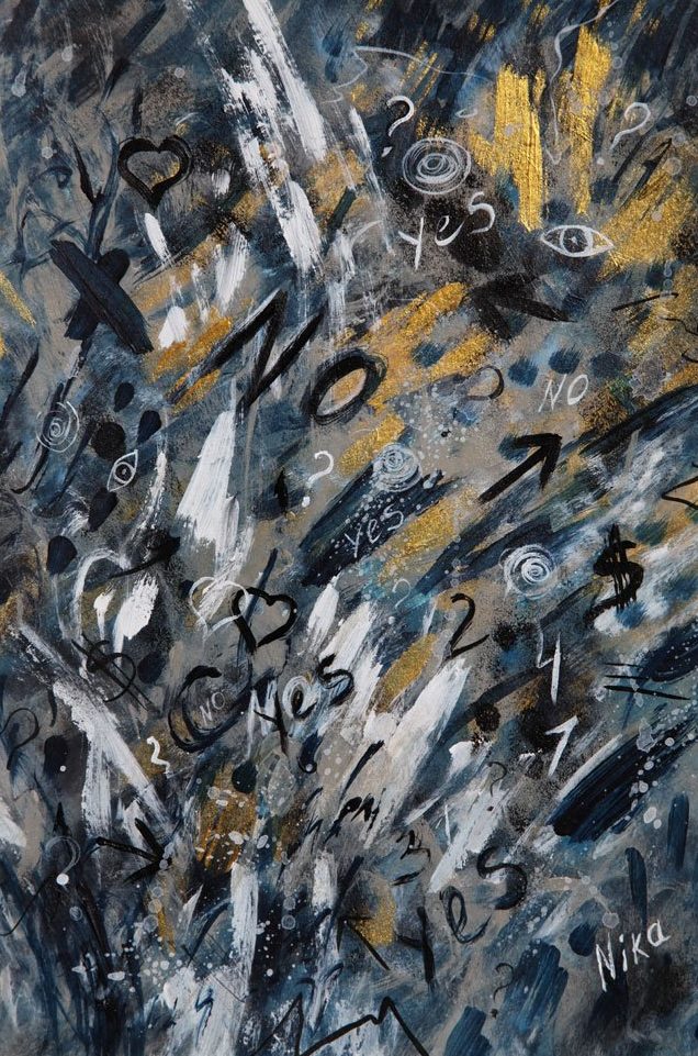 Een globale impressie van het schilderij "Decision" 24x32cm.