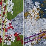 Abstract schilderij, uitgevoerd in Olieverf, Lakverf en Inkt op Linnen